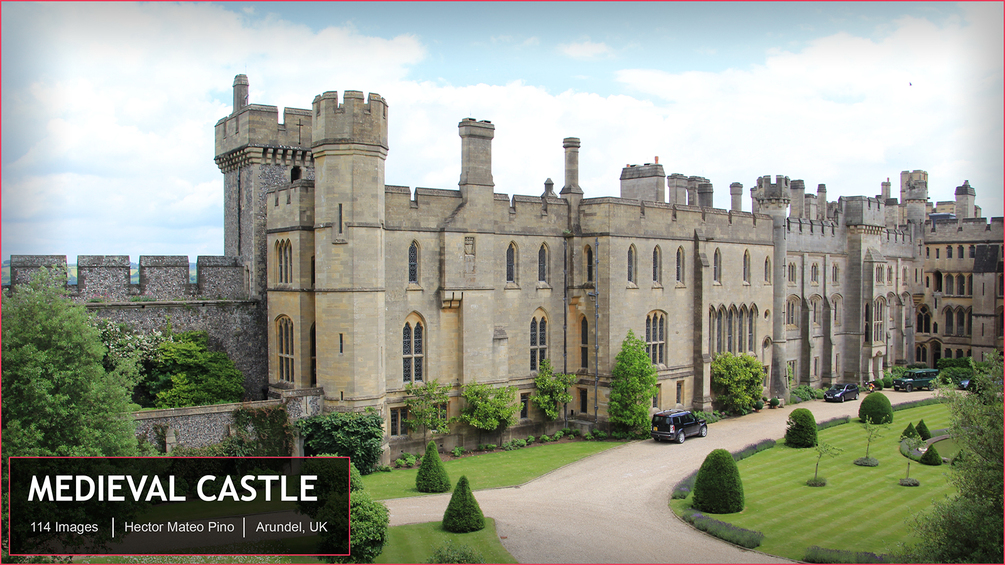 This Arundel Castle pack contains 114 high res 5184x3456 pixel photos from Arundel Castle located in the south of the UK. It features exterior shots of the castle, castle grounds, wall and gardens.