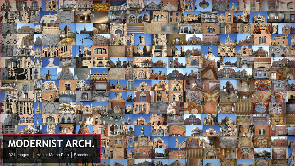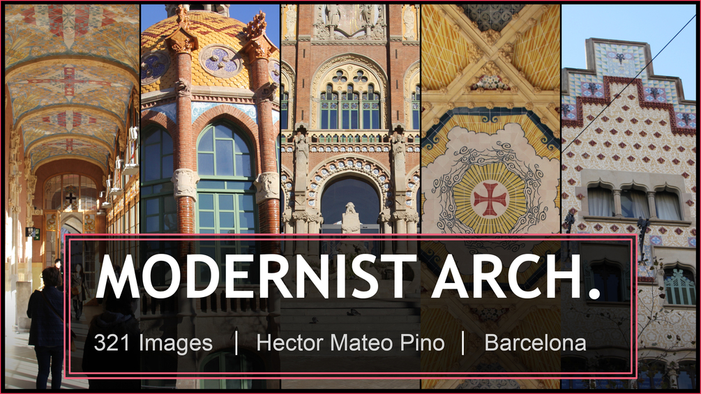 It offers an insight into the Modernism Architecture movement within Barcelona, featuring UNESCO world heritage buildings. It features primarily the Hospital de Sant Pau, both exterior and interior of the whole area with closeup details. It also contains images of the Sagrada Familia's facade, as well as iconic buildings from Passeig de Gracia.
